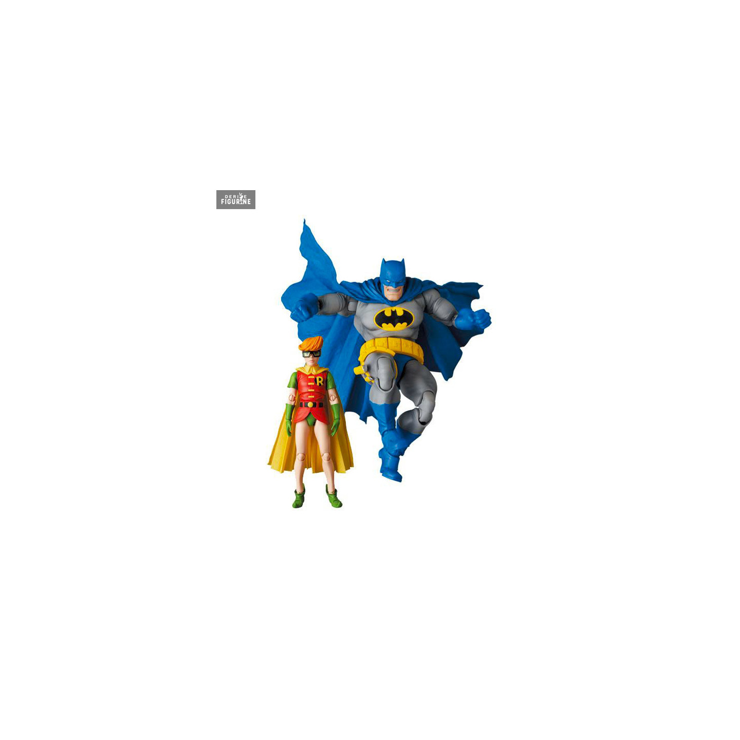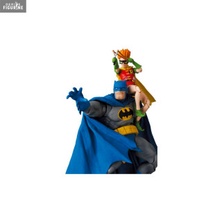 Figurines officielles de Batman et Robin mesurant environ 16 et 11 centimètres de haut. Elles sont issues de la collection Miracle Action Figure (MAF). Le fabricant est Medicom Toy.