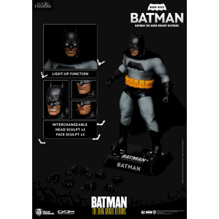 Batman The Dark Knight Return a droit à une figurine chevalier noir de Gotham City vraiment trop badass pour la collection des prestigieuses Dynamic 8ction Heroes. Vendu avec différents accessoires et visages dont un profitant d'un éclairage LED pour les yeux, Bruce Wayne est ici plus réaliste que jamais pour une figurine haut de gamme avec des tonnes de possibilités d'expositions ! Fonctionne avec 3 piles LR44 incluses.