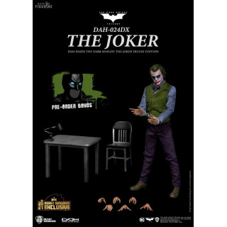 Figurine officielle de The Joker mesurant environ 21 centimètres de haut, à l'échelle 1/9. Elle est issue de la collection Dynamic 8ction Heroes. Le fabricant est Beast Kingdom.