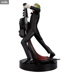 Vous avez la chance de pouvoir découvrir une statuette que l'on doit à Greg Capullo, qui nous représente le Joker en train de danser avec Batman. Pour être plus exact, on devrait plutôt dire qu'il dans avec le costume vide et ensanglanté de Batman. Son visage est également couvert de bandelettes qui ne laisse rien présager de bon pour Bruce... Le socle donne l'impression qu'ils sont sous la pluie et sachez que cette figurine est limitée à 5 000 exemplaires.