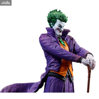 Figurine officielle de The Joker en résine mesurant environ 18 centimètres de haut, à l'échelle 1/10. Le fabricant est DC Direct.