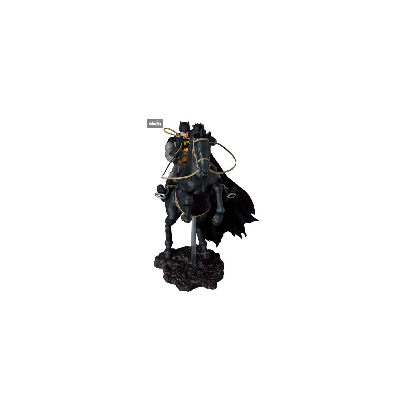 Cette figurine vient de DC Comics, Batman : Dark Knight Returns et elle représente le célèbre Bruce Wayna aka Batman en compagnie de son cheval pour la collection MAF EX. La figurine est vendue avec de nombreux accessoires et est extrêmement réaliste vis à vis du comics d'où est tirée cette création.