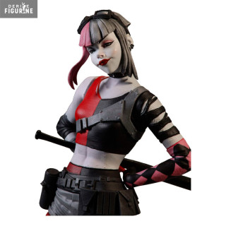 Figurine officielle de Harley Quinn en résine mesurant environ 17 centimètres de haut. Le fabricant est McFarlane Toys.
