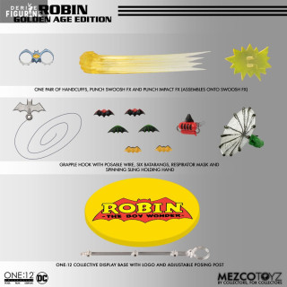 Figurine officielle de Robin (Golden Age Edition) mesurant environ 16 centimètres de haut, à l'échelle 1/12. Elle est issue de la collection One:12. Le fabricant est Mezco Toys.