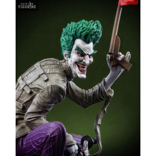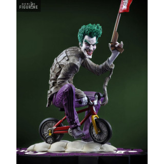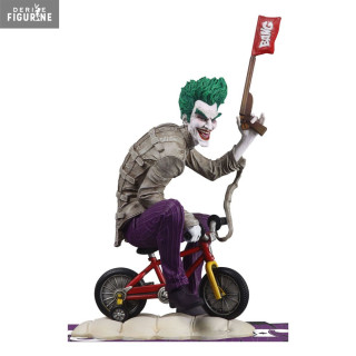 Sur un vélo et tenant un pistolet en l'air qui tire un "BANG !", cette scène capture l'esprit erratique et imprévisible du Joker. Sa pose dynamique et provocatrice est parfaitement capturée, ajoutant une touche de mouvement et d'action à cette figurine déjà impressionnante. Cet accessoire emblématique renforce encore davantage le caractère iconique du Joker et évoque instantanément l'essence de ce personnage légendaire.
