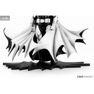 Cette édition exclusive, présentée lors du San Diego Comic-Con (SDCC) 2024, capture Batman dans un style monochrome élégant, rendant hommage à l'art des comics classiques tout en ajoutant une touche de modernité. La palette de couleurs noir et blanc met en valeur les détails complexes de son costume et de sa cape majestueuse, créant un contraste saisissant qui accentue la musculature imposante et l'aura menaçante de ce héros emblématique.