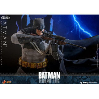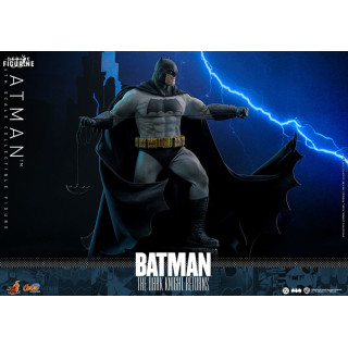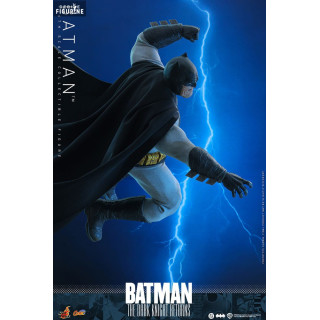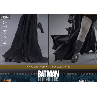 Dans The Dark Knight Returns, Batman sort de sa retraite pour combattre le crime qui ronge Gotham City, malgré son âge avancé. Ce Batman vieillissant, marqué par ses années de combat, est représenté ici avec un réalisme époustouflant, notamment grâce à la tête interchangeable offrant trois expressions faciales différentes qui traduisent sa rage et sa détermination. La figurine est également équipée d'une cape dotée d'un fil de fer intégré permettant des poses dynamiques, et est livrée avec plusieurs accessoires emblématiques comme son grappin, un batarang et divers sets de mains pour des poses variées.