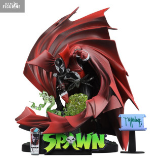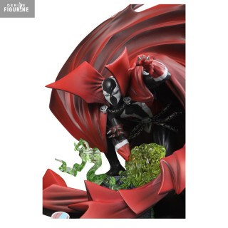 Spawn, l'anti-héros emblématique créé par Todd McFarlane, est ici capturé dans une figurine spectaculaire inspirée de la couverture du premier numéro de sa série. Al Simmons, ancien agent des forces spéciales trahi et assassiné, est ressuscité sous la forme de Spawn après avoir conclu un pacte avec le démon Malebolgia. Dans cet état, il devient une créature de l'ombre, dotée de pouvoirs surnaturels et d'un passé lourd de regrets et de vengeance. Confronté à un monde sombre où il doit choisir entre la justice et la damnation, Spawn incarne un héros tourmenté, oscillant entre le bien et le mal.