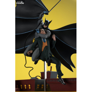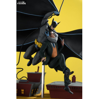 Cette figurine officielle représente Batman, tel qu'il apparaît dans sa première apparition dans le Detective Comics #27, datant de 1939. Cette édition limitée rend hommage au Chevalier Noir dans une pose dynamique, évoquant parfaitement l'aura intimidante et héroïque du protecteur de Gotham City. Batman, sous le costume emblématique bleu-gris avec des touches rétro, est représenté en pleine action, saisissant un malfaiteur pour le neutraliser. Sa cape démesurée, une caractéristique frappante des premières illustrations du personnage, accentue le mouvement et confère à cette statue une esthétique fidèle au style vintage des premières bandes dessinées de DC Comics.