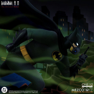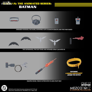 Figurine officielle de Batman mesurant environ 17 centimètres de haut, à l'échelle 1/12. Elle est issue de la collection One:12. Le fabricant est Mezco Toys.