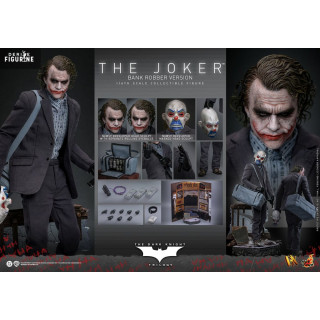 Figurine officielle de The Joker (Bank Robber Version) mesurant environ 30 centimètres de haut, à l'échelle 1/6. Elle est issue de la collection DX. Le fabricant est Hot Toys.