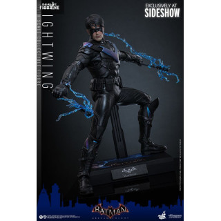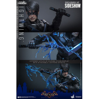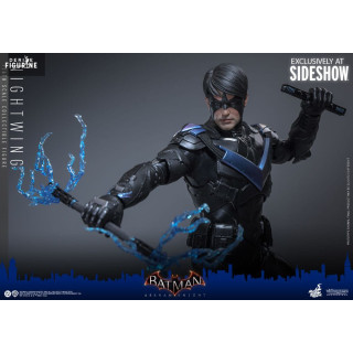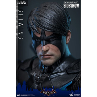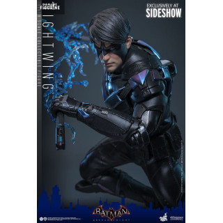 Figurine officielle Nightwing mesurant environ 30 centimètres de haut, à l'échelle 1/6. Elle est issue de la collection Videogame Masterpiece. Le fabricant est Hot Toys.