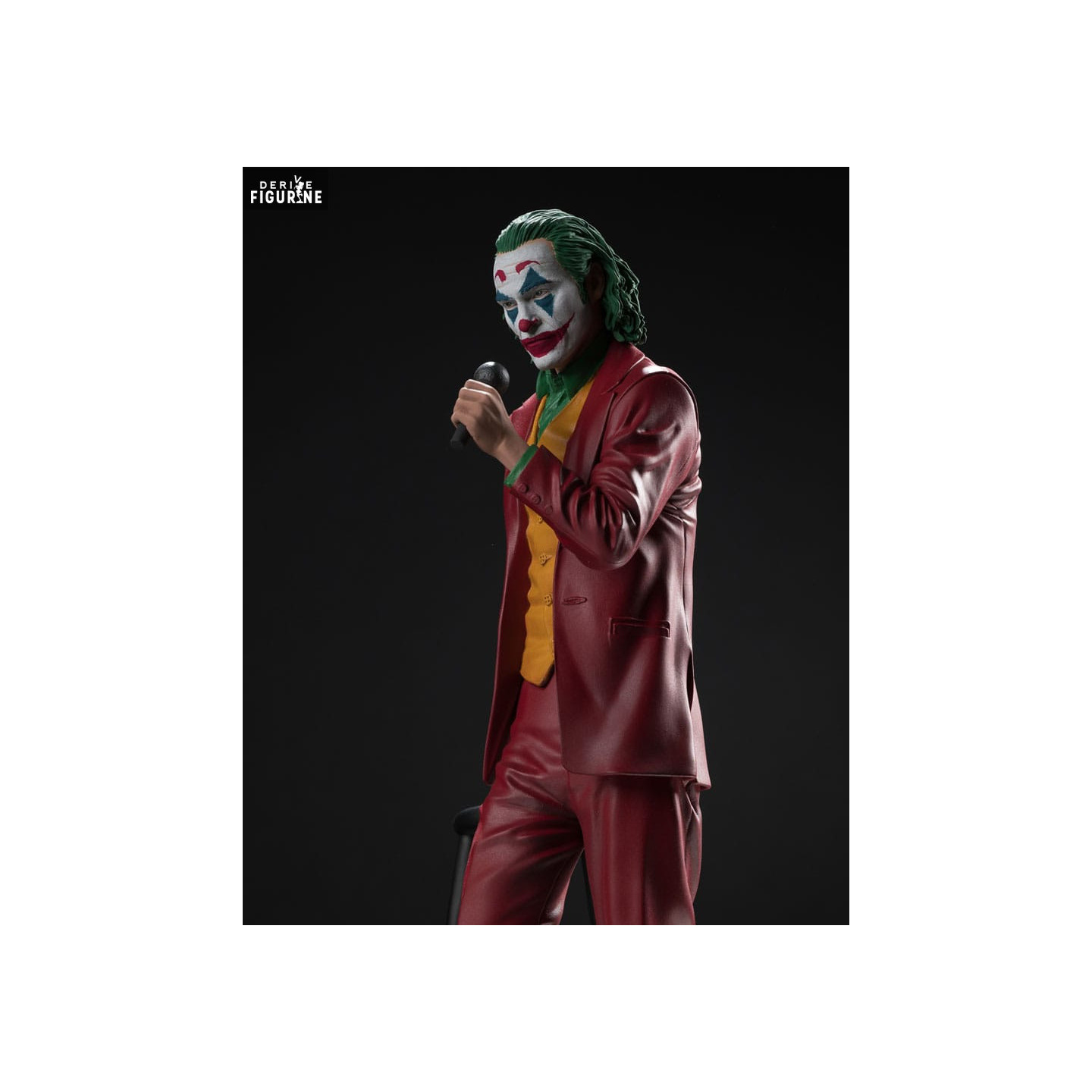 Cette figurine, conçue par McFarlane Toys, est un hommage fidèle à ce Joker mémorable. Elle capture le personnage dans une posture élégante mais menaçante, tenant un microphone, comme pour rappeler l'une des scènes clés du film. Réalisée en résine et mesurant environ 31 centimètres, cette pièce de la collection DC Movie Statues est riche en détails. Le costume rouge vif du Joker, associé à son maquillage emblématique, est parfaitement reproduit, rendant cette figurine incontournable pour les fans de l'univers DC et du film.