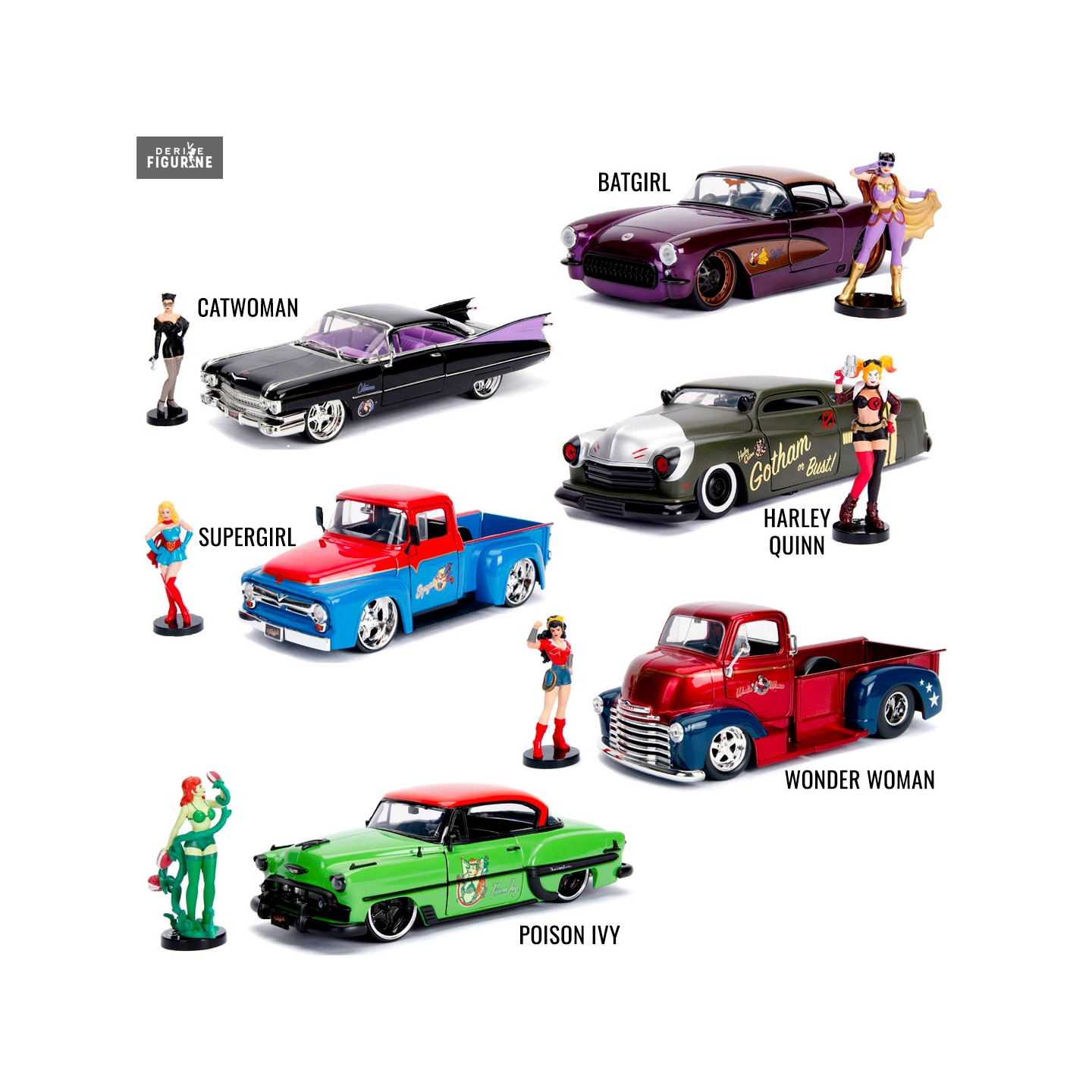 Figurine officielle au choix entre Batgirl, Catwoman, Harley Quinn, Wonder Woman, Poison Ivy ou Super Girl, accompagnée d'un véhicule en métal die cast et plastique injecté, à l'échelle 1/24. Elle est issue de la collection Hollywood Rides. Le fabricant est Jada Toys.