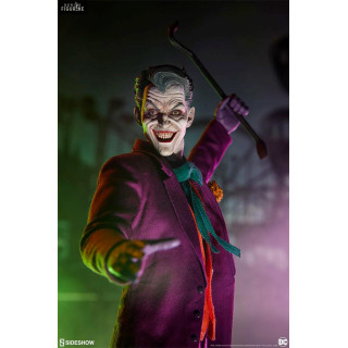 Figurine officielle du Joker mesurant environ 30 centimètres de haut, à l'échelle 1/6. Le fabricant est Sideshow Collectibles.