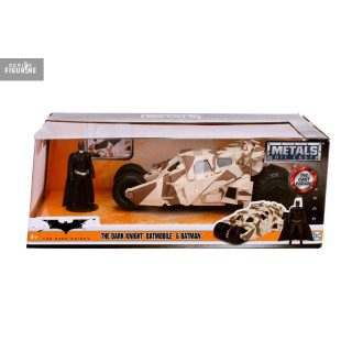 Figurines officielles de Batman & Batmobile Camo en die cast, à l'échelle 1/24. Le fabricant est Jada Toys.