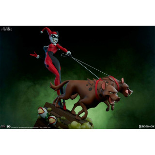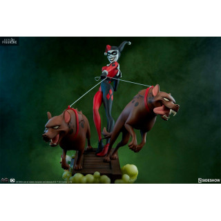 Figurine officielle de Harley Quinn en résine mesurant environ 41x25x38 centimètres. Le fabricant est Sideshow Collectibles.