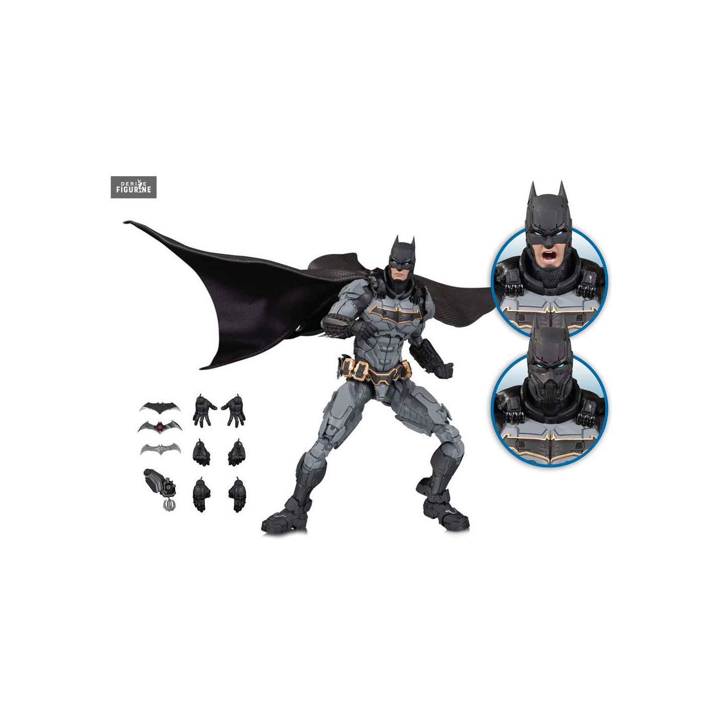 Batman est de retour dans une toute nouvelle figurine et il possède de nombreux accessoires. Il a trois visages différents, des main interchangeables, mais aussi plusieurs batarang et un grappin. Avec tout cela, vous allez pouvoir vous faire plaisir en recréant des scènes cultes.
