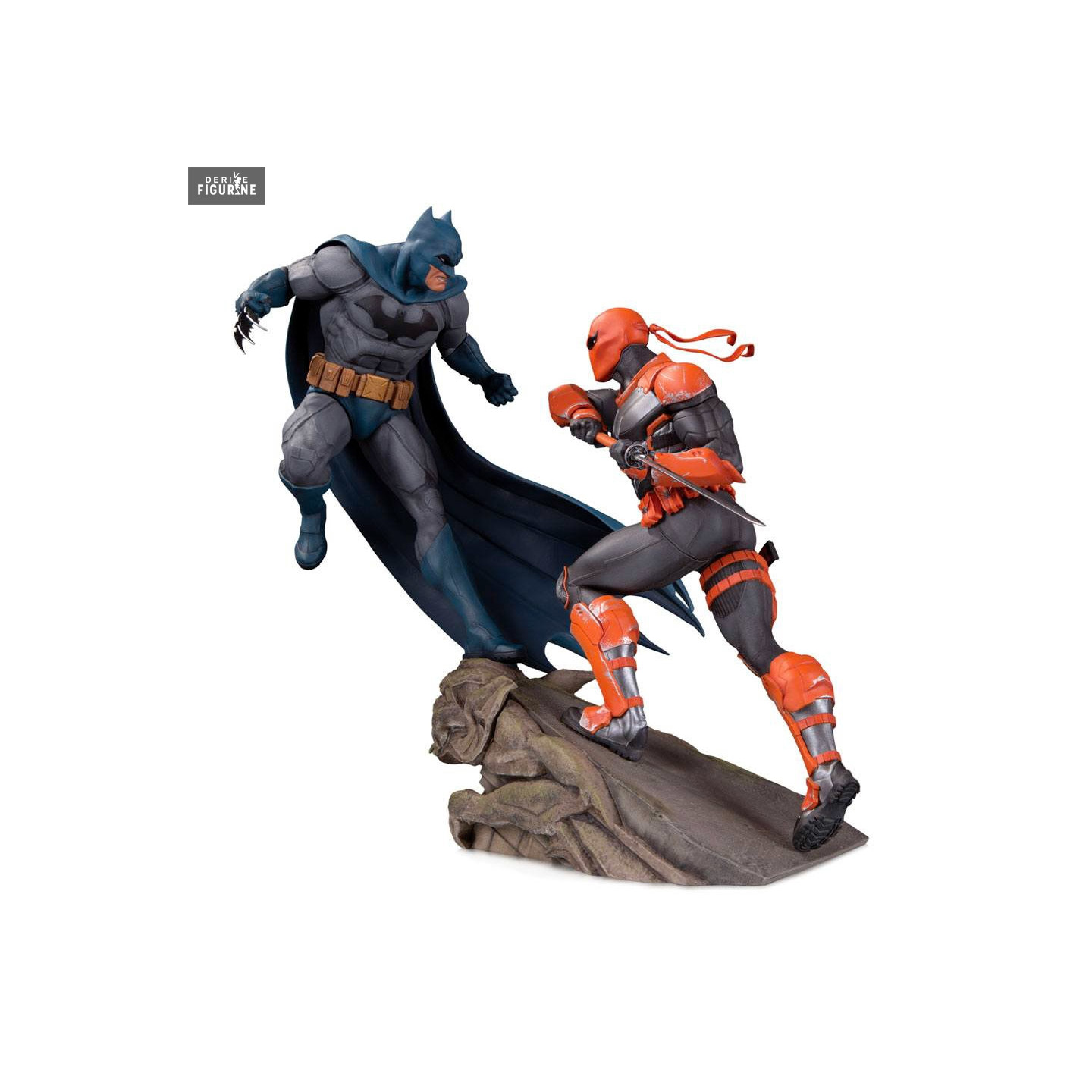 Figurine officielle de Batman vs. Deathstroke en résine mesurant environ 30 centimètres de haut. Le fabricant est DC Collectibles.
