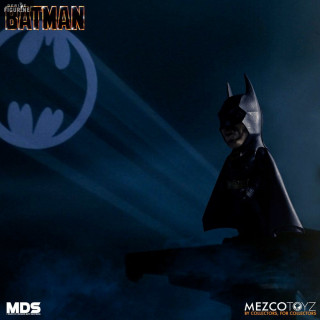 Figurine officielle de Batman mesurant environ 15 centimètres de haut. Elle est issue de la collection Mezco Designer Series (MDS). Le fabricant est Mezco Toys.
