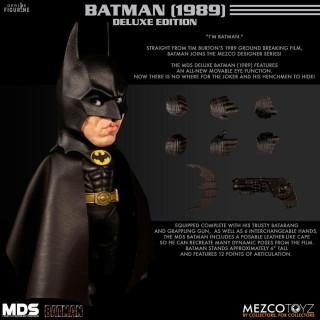 Cette version est inspirée de la version de 1989, quand Batman était interprété par Michael Keaton. Il possède plusieurs paires de mains et vu qu'il s'agit d'une version Deluxe, vous pouvez même lui orienter les yeux dans le sens que vous voulez.