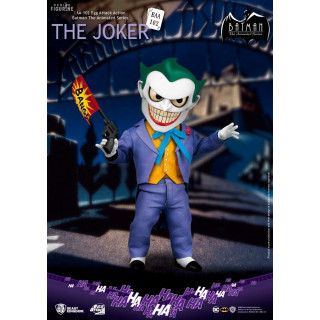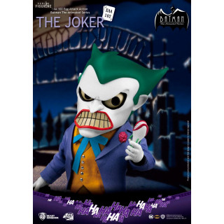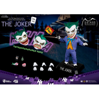 Beast Kingdom continue les Egg Attack de DC Comics avec une deuxième réalisation en provenance de la série animée Batman The Animated Series. Voici l'emblématique clown répondant au nom de Joker et qui est à la fois fou allier, dangereux et un criminel imprévisible dans les rues de Gotham. Le Joker est connu pour son horrible rire, sa bouffonnerie et ses coups bas. Cette figurine le représente ainsi parfaitement il dispose d'une multitude d'accessoires rappelant tous les mauvais tours qu'est capable de faire ce super-vilain ! Si vous craquez pour lui, attention de ne pas sombrer dans sa folie...