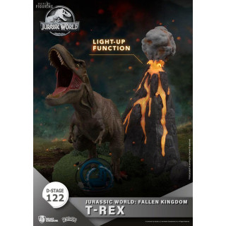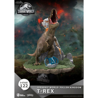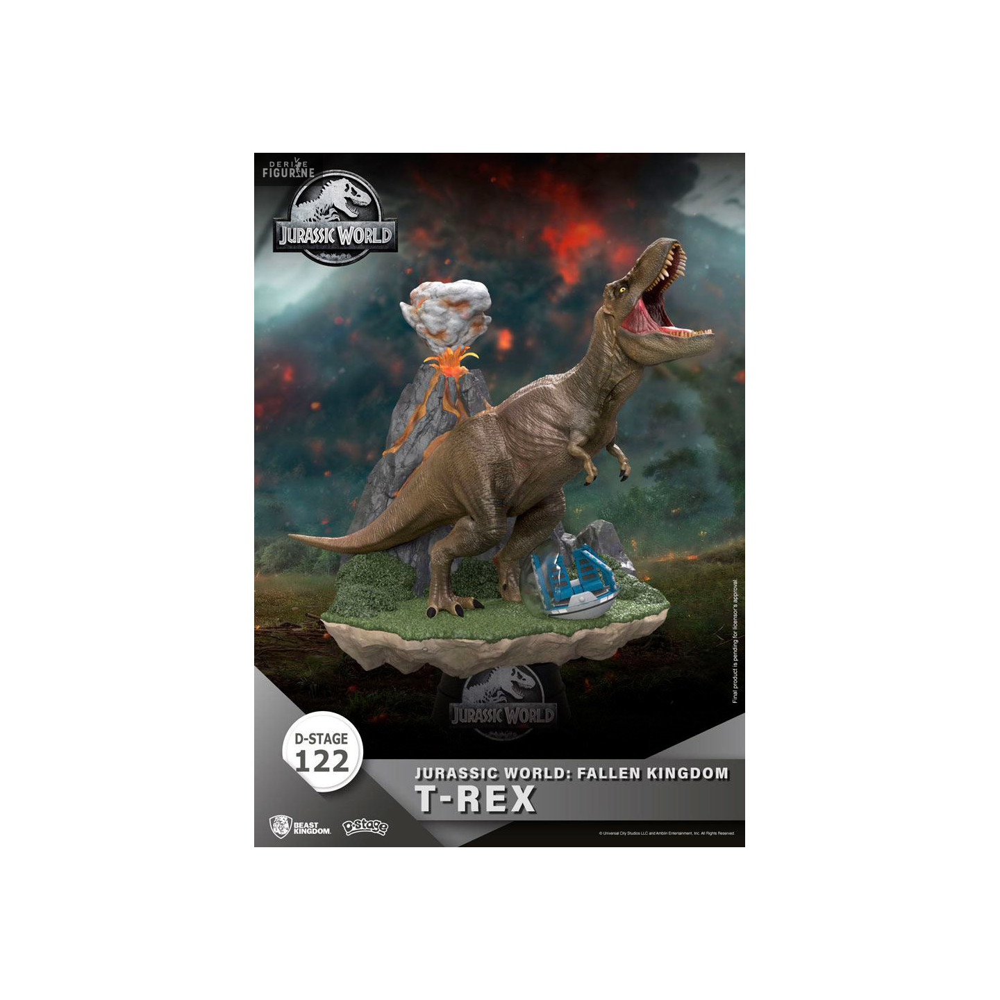 Figurine officielle du T-Rex Fallen Kingdom en PVC mesurant environ 13,4 centimètres de haut. Elle est issue de la collection D-Stage. Le fabricant est Beast Kingdom.