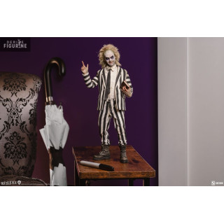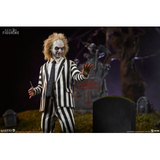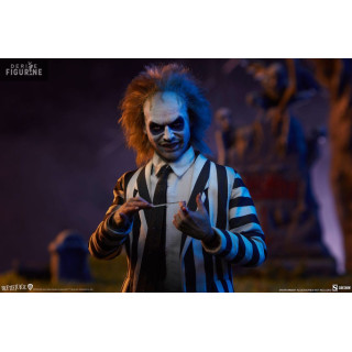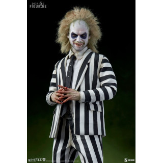 Figurine officielle de Beetlejuice mesurant environ 30 centimètres de haut, à l'échelle 1/6. Le fabricant est Sideshow Collectibles.