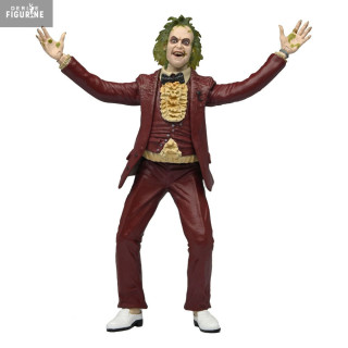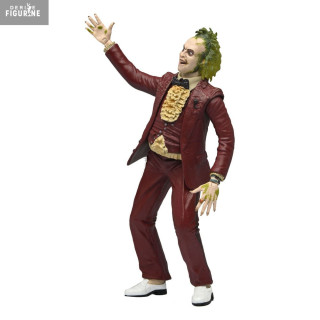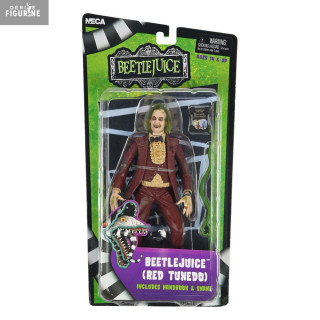Figurine officielle de Beetlejuice, Red Tuxedo mesurant environ 18 centimètres de haut. Le fabricant est NECA.