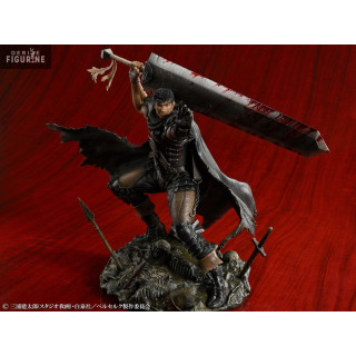 Figurine officielle de Guts, Black Swordsman en PVC mesurant environ 26 centimètres de haut, à l'échelle 1/7. Le fabricant est Medicos Entertainment.
