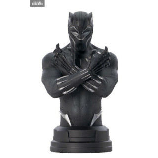 Buste officiel de Black Panther en résine mesurant environ 18 centimètres de haut. Le fabricant est Diamond Select Toys.