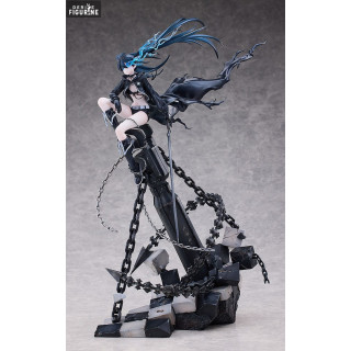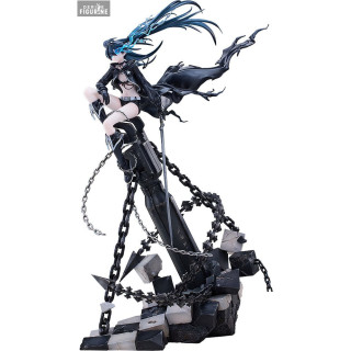 Black Rock Shooter, avec son regard perçant et son emblématique flamme bleue surgissant de son œil gauche, incarne la force et la résilience. Cette figurine illustre parfaitement son allure combatif et dynamique. Perchée sur un imposant pilier noir, entourée de chaînes et de fragments de décor explosés, elle dégage une aura de puissance brute et de détermination. Ses vêtements, une tenue noire minimaliste qui contraste avec sa peau pâle, sont magnifiquement sculptés pour accentuer le mouvement et la tension dramatique de la scène.