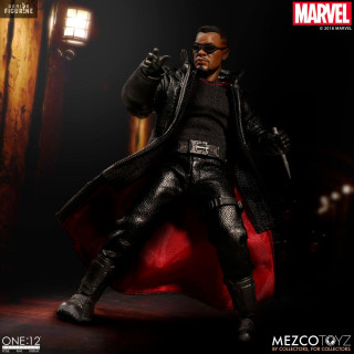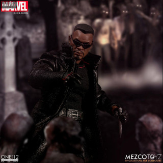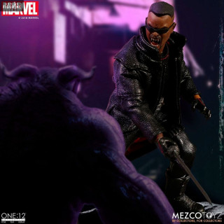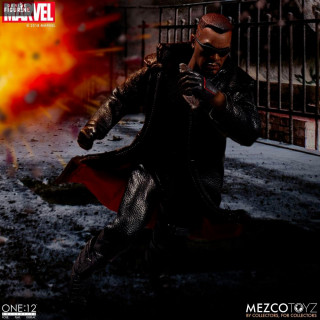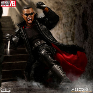 Figurine officielle de Blade mesurant environ 16 centimètres de haut, à l'échelle 1/12. Elle est issue de la collection One:12. Le fabricant est Mezco Toys.