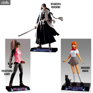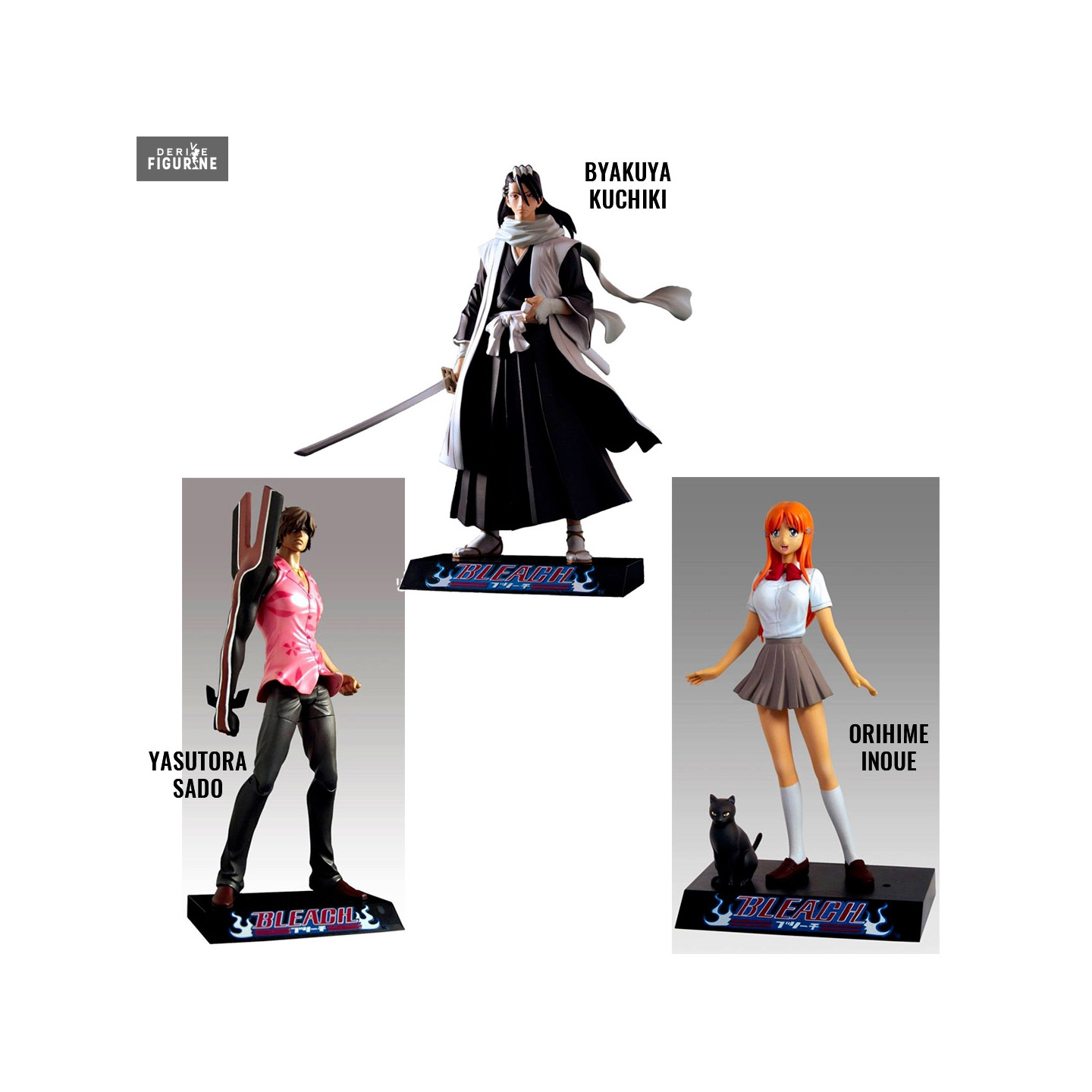 Figurine officielle au choix entre Byakuya Kuchiki, Orihime Inoue ou Yasutora Sado en PVC mesurant environ 15 centimètres de haut. Le fabricant est Toynami.