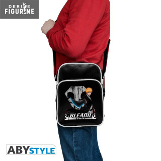 Sacoche de Bleach en polyuréthane qui mesure environ 27x20 centimètres. Elle possède une poche extérieure zippée, une fermeture éclair pour la poche principale et une sangle réglable. Le fabricant est ABYstyle.
