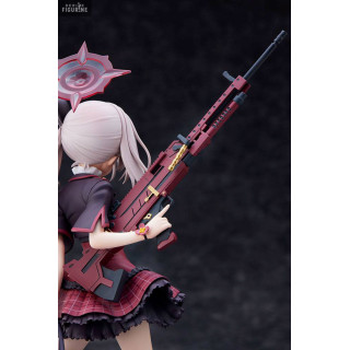 Dans le jeu vidéo Blue Archive, la mignonne et adorable Mutsuki Asagi est une membre du groupe Problem Solver 68 et il ne faut surtout pas se fier aux apparences car... elle est extrêmement dangereuse ! Effectivement, elle manie une arme de guerre culte qui n'est autre qu'une énorme Machine Gun. Cette figurine est splendide et représente parfaitement la jeune étudiante de l'académie Gehenna.
