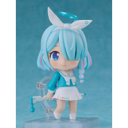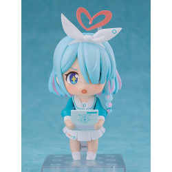 La figurine la présente sous la forme chibi emblématique de la gamme Nendoroid, avec sa chevelure bleu pastel, son petit ruban blanc et son halo flottant au-dessus de sa tête. Ses expressions variées – sourire radieux, étonnement adorable, joie débordante – retranscrivent à merveille la personnalité chaleureuse d’Arona. Sa mèche couvrant un œil et sa tresse latérale ajoutent à son charme caractéristique.