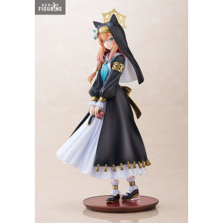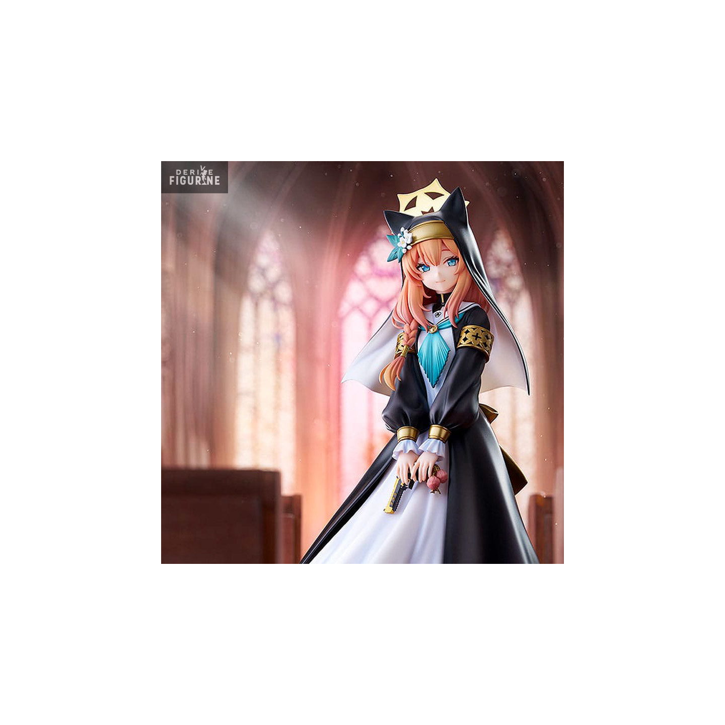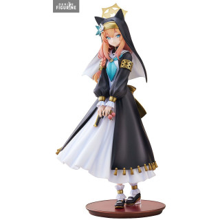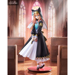 Vêtue d'une longue robe blanche ornée d'un scapulaire monastique noir et d'un harnais en croix doré, Mari dégage une aura magique. Ses accessoires, tels que les bandeaux dorés et les rubans, soulignent son élégance. La figurine met en lumière les détails subtils de son apparence, y compris ses oreilles de renard et ses yeux d'un bleu ciel envoûtant.