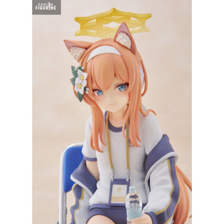 Voici Mari, l’un des personnages charismatiques de "Blue Archive", dans une pose des plus adorables. Issue de l’univers du jeu mobile populaire, Mari est représentée ici dans sa tenue d’entraînement, assise sur une chaise après une séance de sport intense. Son expression douce et un peu pensive, accompagnée de ses oreilles de chat et de son auréole lumineuse, dégage un charme irrésistible. La figurine capture un moment de repos bien mérité, où Mari tient une bouteille d'eau pour se rafraîchir après l’effort. Avec sa tenue de gym composée d'un short et d'une veste de sport aux couleurs douces, elle incarne l’innocence et l’énergie juvénile qui caractérisent l'univers de "Blue Archive".