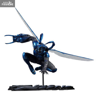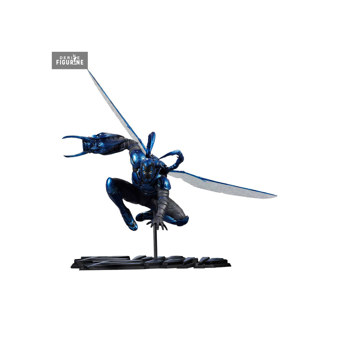 Figurine officielle de Blue Beetle en résine mesurant environ 35 centimètres de haut. Le fabricant est DC Direct.