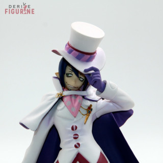 Figurine d'occasion et officielle de Mephisto Pheles en ABS/PVC d'environ 15 centimètres de haut. Mephisto vous salue en faisant un signe avec son chapeau. Il s'agit d'un objet d'occasion en parfait état issu de la collection DXF Figure. Le fabricant est Banpresto, vendu avec boîte en assez bon état, juste un peu abîmée sur le dessus.