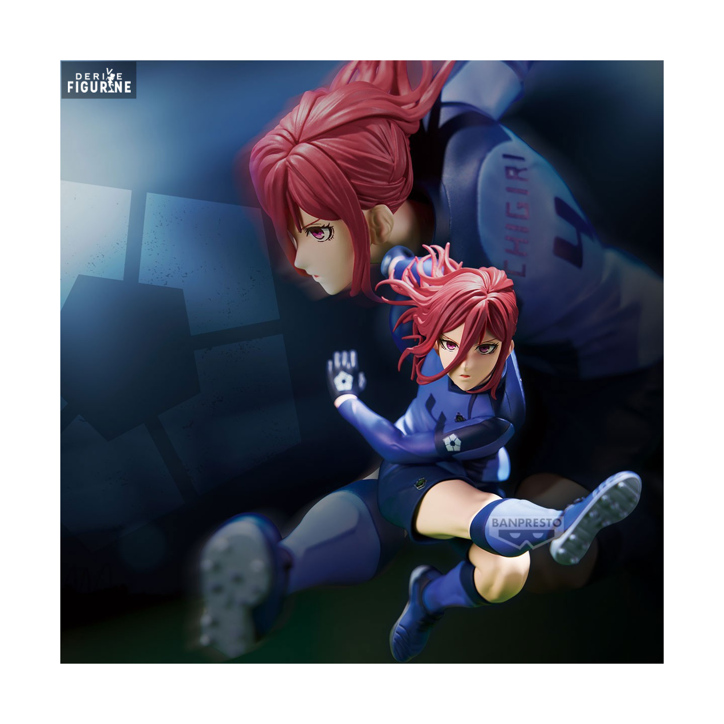 Figurine officielle Hyoma Chigiri en PVC mesurant environ 10 centimètres de haut. Le fabricant est Banpresto.