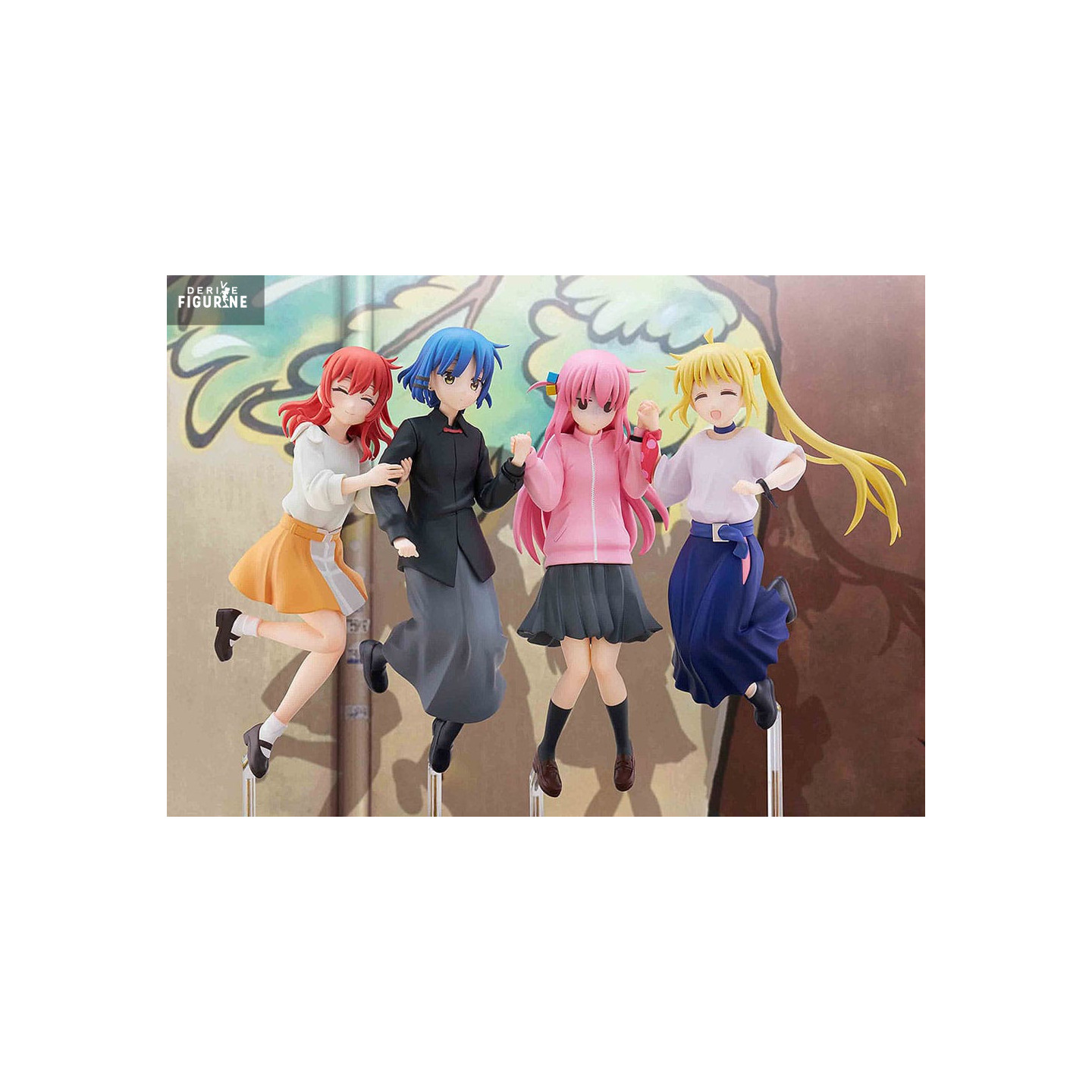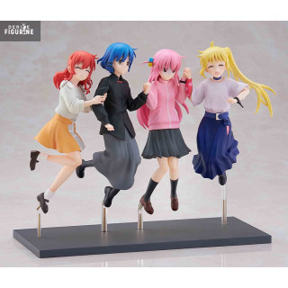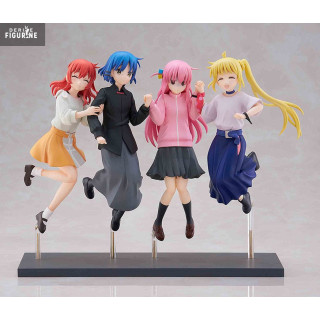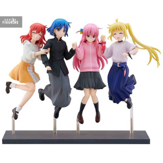 Les héroïnes de Bocchi the Rock! se retrouvent dans une scène dynamique et joyeuse avec cette figurine "Jumping Girl(s)" qui capture un instant de pur bonheur et d'amitié. Chaque personnage est présenté dans une pose pleine d’énergie, reflétant la complicité et la bonne humeur qui caractérisent leur relation. Bocchi, Nijika, Ryo et Ikuyo affichent des expressions pétillantes, vêtues de leurs tenues emblématiques qui mettent en valeur leur personnalité unique. Ce moment suspendu où elles sautent ensemble symbolise la joie simple de partager des instants entre amis, un thème central de la série.