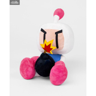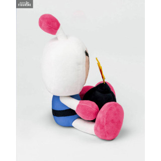 Bomberman est à la base une licence de jeux vidéo, dans lequel votre personnage porte le même nom. Le but est assez simple puisque vous incarnez un personnage qui va devoir tenter d'éliminer ses ennemis à l'aide de bombes. Vous pouvez aussi ramasser des bonus qui vous permettront de poser plus de bombes, que leur explosion soit plus puissante etc... Ici, vous avez donc une peluche qui le représente et en plus, la bombe peut être mise là où vous voulez.