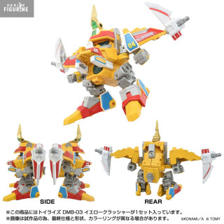 Figurine officielle de DMB-03 Yellow Crusher mesurant environ 11 centimètres de haut. Elle est issue de la collection Toyrise. Le fabricant est Takara Tomy.