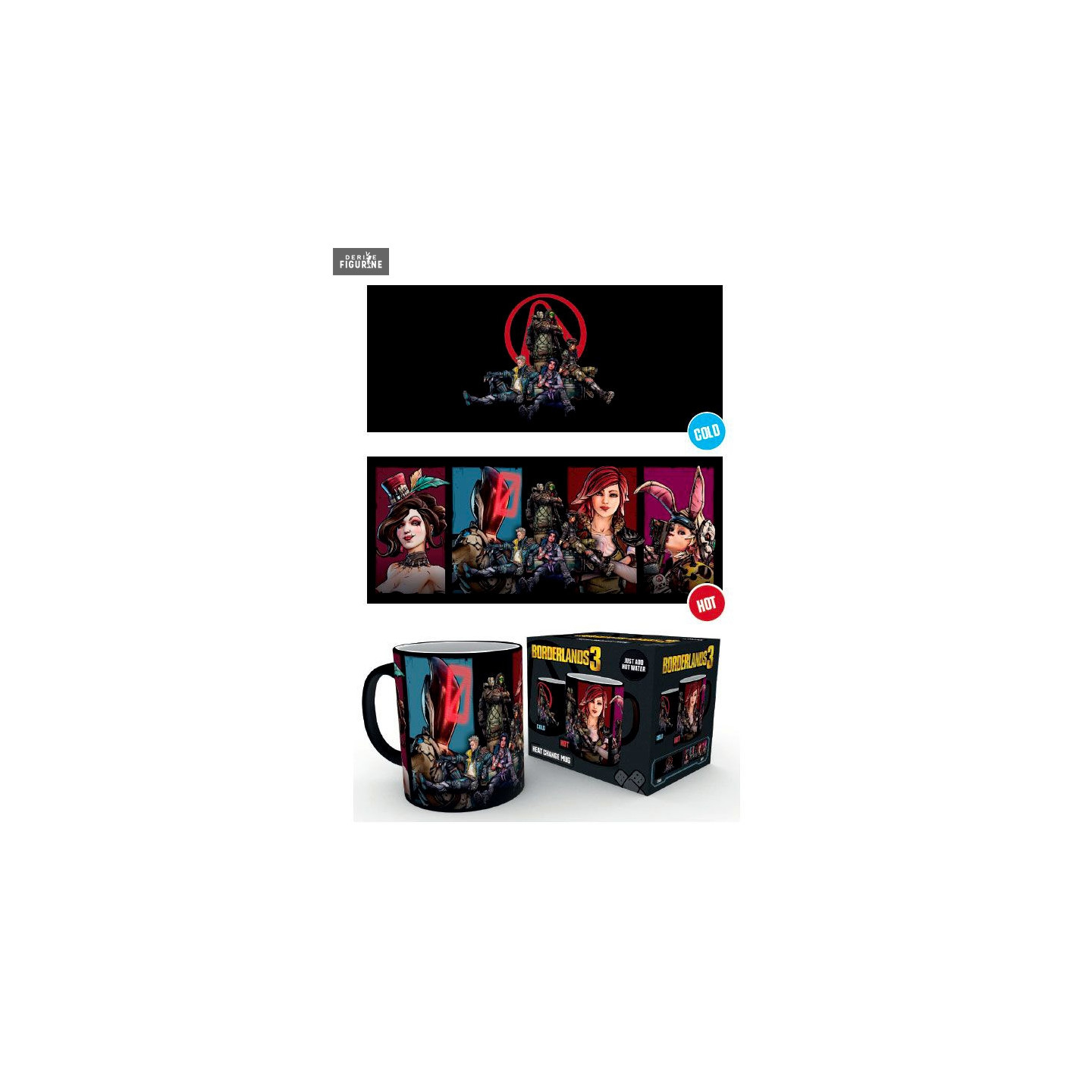 Mug thermoréactif officiel de Borderlands 3 Characters en céramique dont la contenance est de 30 cl. Ne pas mettre au lave-vaisselle. Le fabricant est GB Eye.