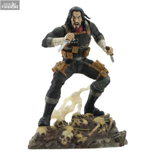 Cette figurine de B. (Modern), fabriquée en PVC par Diamond Select Toys, capture parfaitement l’essence du personnage. Mesurant environ 23 centimètres de haut, elle met en scène B. dans une posture agressive, brandissant ses couteaux au milieu d’un champ de crânes et d’ossements. Les détails de la tenue tactique, les cicatrices et les expressions de rage ajoutent une dimension saisissante à cette pièce. Issue de la collection Gallery, cette figurine est un véritable hommage à l’intensité de l’univers de BRZRKR.
