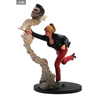 Je pense que beaucoup de jeunes filles et garçons étaient complètement fans de Sarah Michelle Gellar à l'époque où elle incarnait Buffy Summers dans la trilogie du samedi. Vous arrivez au bon moment car elle est justement en train de tuer un vampire en lui enfonçant un pieu dans le cœur et cette cet instant est immortalisé avec cette figurine.