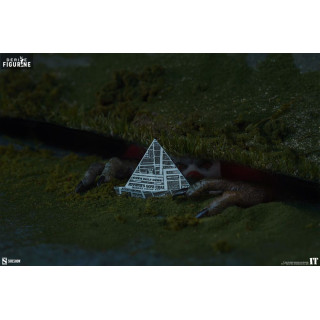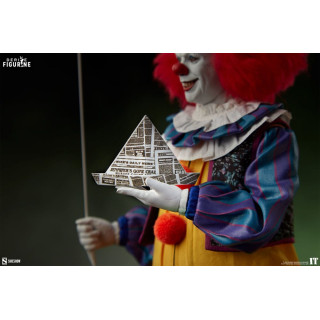 Figurine officielle de Pennywise mesurant environ 30 centimètres de haut, à l'échelle 1/6. Le fabricant est Sideshow Collectibles.