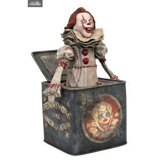 Figurine officielle de Pennywise in Box en PVC mesurant environ 23 centimètres de haut. Elle est issue de la collection Gallery. Le fabricant est Diamond Select Toys.